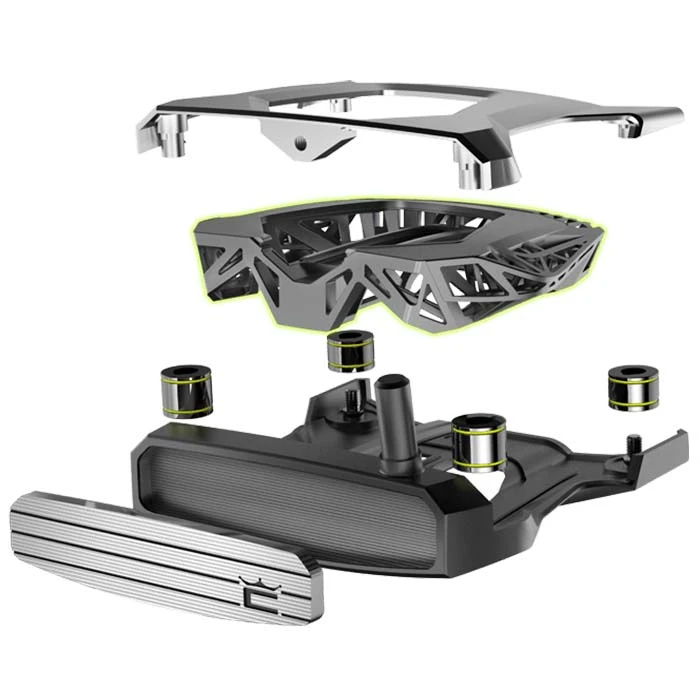 A 304g steel chassis lowers the center of gravity and adds structural stability to support the other components. - FORGED ALUMINUM CROWN